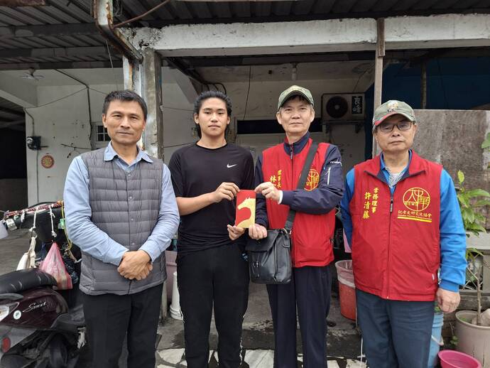 【記者林富貴/花蓮報導】3日中午,大中華記者友好交流協會理事長林富貴偕同常務理事許清藤,特地自台北前往花蓮,與花蓮高工校長曾銘文、進修部主任金良遠一同前往進修部一年級太魯閣族游姓學生家中關懷,致贈6000元慰問紅包並表達誠摯慰勉之意,期盼減輕家庭負擔,讓學生安心就學。 此次慰問金由林富貴、蔡其樺、丁建明、魏治民及李光前等人共同捐助,展現社會溫暖力量。