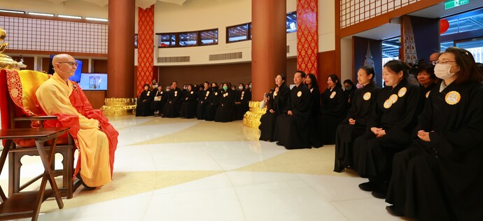 大康法師圓滿開示時,分享裝臟的三個意義,並引述開山住持心道法師一直提醒我們要做華嚴世界的事情,今年啟用的「福城」,就是四期教育與靈性生態理念的實踐平台,象徵著從經典走入社會、從智慧走向利益眾生的道路。