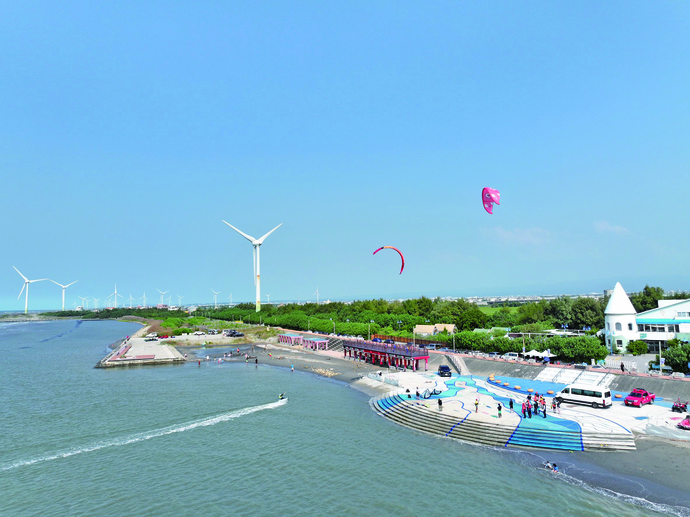 圖說:踏浪季節到來,圖為已為開放式水域的大安濱海樂園。 (中市觀旅局提供)