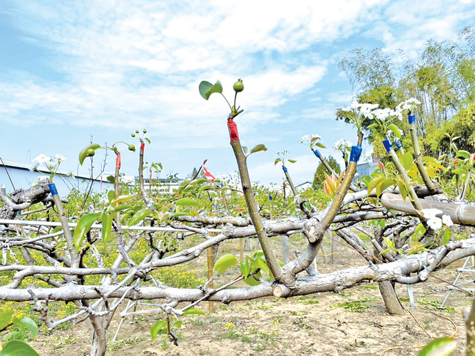 圖說:梨樹正值開花著果關鍵期,尤須防範梨赤星病危害。 (中市農業局提供)