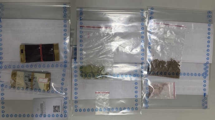 經對劉嫌施以唾液快篩呈現陽性反應,依法舉發劉嫌施用毒品駕車並移置保管車輛,並查扣毒品愷他命施用器具k卡一張、毒品大麻1包、愷他命1包、毒品咖啡包8包、哈密瓜錠1包、梅錠1包及手機2支。