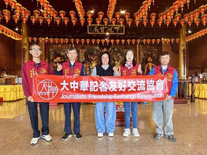 【記者林富貴/台南報導】今(14)日上午,大中華記者友好交流協會理事長林富貴率常務理事許清藤、常務理事林睿明、常務監事陳沛晴,前往台南麻豆太子宮參拜祈福,一行人在參拜後,受到太子宮執行長施惠珠盛情接待。