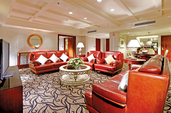 圖說:體驗台中旅遊的尊榮,圖為金典酒店總統套房客廳。 (中市觀旅局提供)