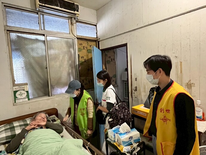 對家住泰山的林先生來說,46年次的他,本該是含飴弄孫的年紀,命運卻給了他最艱難的試煉。 糖尿病的侵襲奪走了他的右腳,反覆潰爛的左腳傷口更像是一場醒不來的噩夢,讓支撐家計的妻子與三名子女,在漫長的照護與經濟重擔下,幾乎窒息。 111年經轉介,創世板橋院走進了這個搖搖欲墜的家。 護理師每月的定期到訪,不只是為傷口換藥,更是溫柔地拂去家屬心中對害怕傷口感染的恐懼;社工員迅速媒合輔具與物資,以最實質的幫助,接住了這個差點墜落的家庭。 這份守護,讓林先生一家從最初的混亂無助,到如今能在病痛中重拾生活的秩序。 對他們而言,創世親手送上的不只是資源,更是一份「有人陪你一起撐」的勇氣。