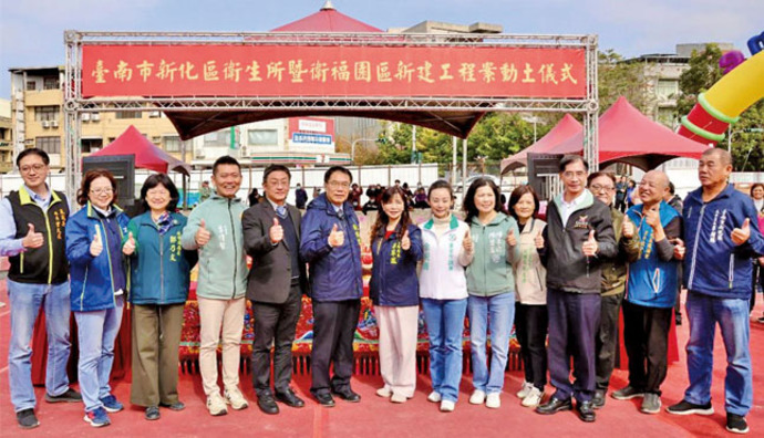 【記者潘志航/台南報導】為強化地方基層醫療服務能量,並完善多元社會福利照顧體系,新化區衛生所暨衛福園區舉行動土典禮,臺南市長黃偉哲親自出席主持,與國健署林國甯組長、地方民意代表、里長及各界貴賓共同見證重要時刻,祈願工程順利、如期如質完工,為新化區公共建設揭開嶄新篇章。 市長黃偉哲表示,新化區衛生所暨衛福園區為市府重要施政建設之一,因應高齡化與少子化社會的雙重挑戰及市民多元照顧需求,市府秉持「以人為本、全齡照顧、在地服務」的核心理念,整合醫療、照顧及社會福利資源,規劃打造兼具專業性與友善性的複合式衛福園區,未來將進駐衛生所、日照中心、托嬰中心、多功能生活館、親子悠遊館及身心障礙者自立生活支持服務中心等,提供嬰幼兒、家庭、長者及身心障礙者全方位、一站式的照顧與支持服務,不僅可強化基層公共衛生及疾病預防功能,擴充長照與托育服務量能,協助身心障礙者培力自立,減輕家庭照顧負擔,亦可提升提升整體生活品質,實踐「老有所養、幼有所育、弱有所扶」的施政目標。