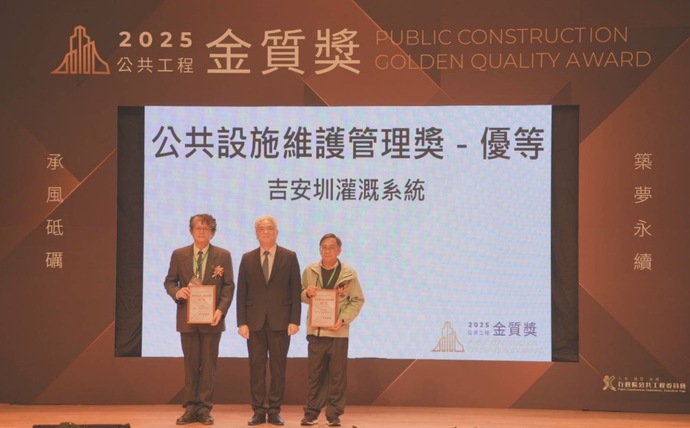 『記者吳沛晶/花蓮報導』農業部農田水利署花蓮管理處所轄「吉安圳灌溉系統」榮獲第25屆公共工程金質