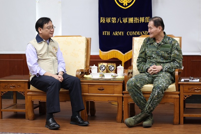 會談中,劉處長也特別感謝陸軍第八軍團於颱風侵襲期間,積極協助山區弱勢榮民及眷屬的疏散撤離作業,展現「軍民一家親」的精神。 指揮官劉中將則表示,透過與榮服處的長期合作,不僅能讓官兵在營期間安心服役,也能鼓勵優秀人才長期留營獲取最大權益,退役後更有完善的保障系統支撐。