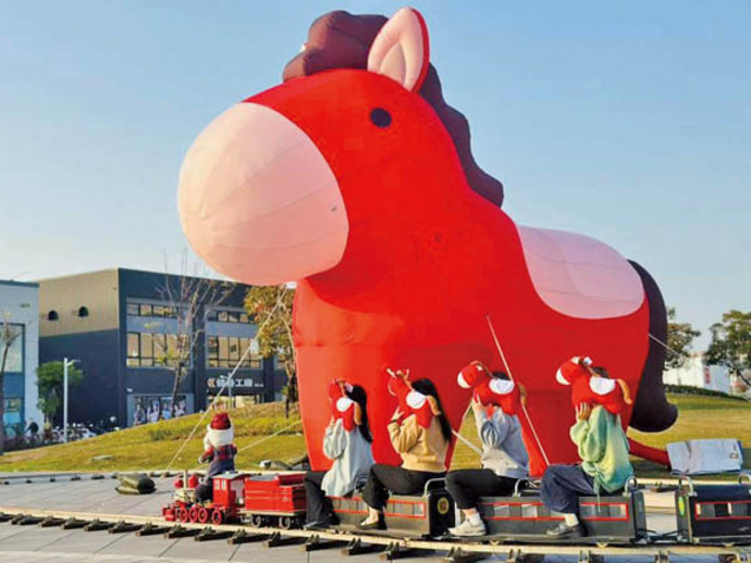 商場同步搭配2026年搖搖馬春節主題陳列,於戶外街區與主要動線點綴「瑞馬迎春」造景,營造溫馨年節氛圍。