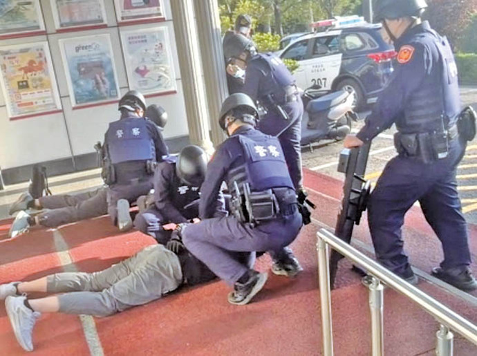 中興分局接獲通報後,立即啟動攔截圍捕機制,迅速調度線上巡邏警力,於歹徒得手準備逃逸之際,展開包抄圍捕行動,成功將2名「鴛鴦大盜」當場制伏逮捕,演練過程緊湊刺激,讓在場洽公民眾也彷彿身歷其境。