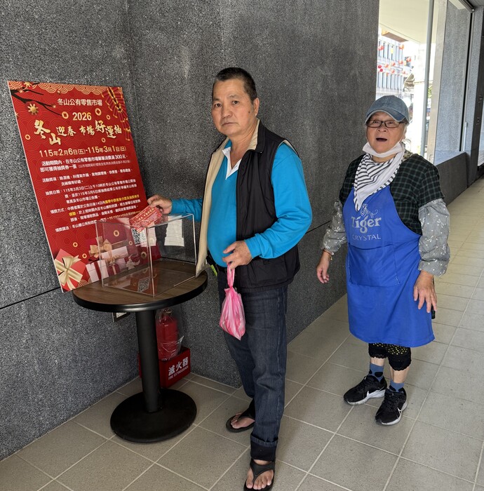 【記者林富貴/宜蘭報導】振興地方經濟、活絡市場消費,並配合冬山公有零售市場正式啟用,冬山鄉公所攜手冬山鄉民代表會舉辦「冬山迎春・市場好運抽」抽獎活動,自115年2月6日起至3月1日止,邀請民眾到冬山公有零售市場消費採買年貨、生活用品,就有機會把多項實用家電與生活好禮帶回家。