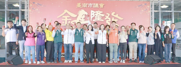 【記者吳淑華/台南報導】農曆新年將至,臺南市議會在議會大廳舉行「金馬隆發聯誼餐會,邀請議員、台南市議會員工及府會聯絡人齊聚一堂,回顧過去一年共同努力的成果,並提前向彼此拜早年。 現場氣氛熱絡溫馨,充滿濃濃年節喜氣。 議長邱莉莉與多位議員同台舉杯,並合唱「今年一定會好過」向所有同仁致意;臺南市長黃偉哲也率市府各局處首長親臨現場祝賀,展現府會良好互動與合作默契。 為議員與議會同仁提供重要交流平台,與會踴躍。 包括副議長林志展及林燕祝、李宗翰、王宣貿、陳皇宇、蔡宗豪、曾培雅、杜素吟、周嘉韋、施余興望、王家貞、蔡蘇秋金、蔡秋蘭、謝舒凡、余柷青、黄肇輝、鄭佳欣、楊中成、郭鴻儀、陳碧玉、李鎮國、陳秋宏、許至椿、IngayTali、李啓維、李中岑、李宗霖、陳秋萍、林美燕、黃麗招、邱昭勝、朱正軒、林冠維、方一峰、盧崑福、吳禹寰等多位議員。 每位議員以一句吉祥話向大家拜年,祝福新的一年順利平安,為活動增添滿滿年味與歡笑聲。