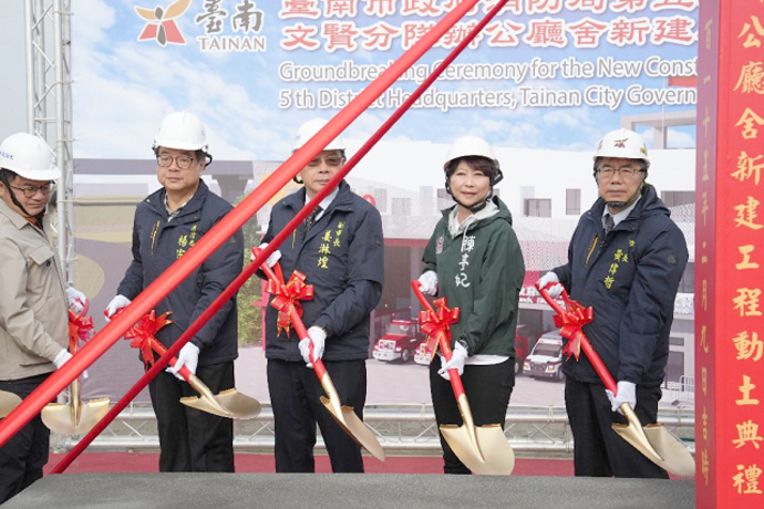 【記者吳淑華/台南報導】=臺南市政府消防局第五救災救護大隊文賢分隊辦公廳舍新建工程動土典禮,在仁德區新建工程基地隆重舉行,由市長黃偉哲親自主持,消防局長楊宗林陪同出席,並邀請各級民意代表、地方仕紳及貴賓蒞臨見證,共同為消防建設的重要里程碑揭開序幕。