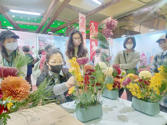 春節花市民衆心學插花 賞花插花趣味無窮五彩繽紛樂逍遙