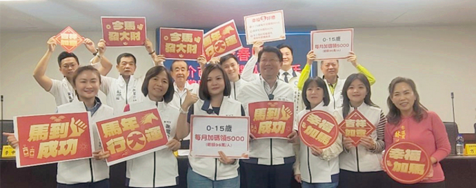 謝龍介市長參選人帶領著市議會國民黨團書記長林燕祝、議員李中岑、盧崑福、方一峰、尤榮智、王家貞、蔡宗豪、林美燕、許至椿,以及年輕的參選人尤淨寬、葉翰勳、歐政豪、李佳蓉、陳冠諭跟台南鄉親拜年,祝大家馬上幸福、金馬熊讚。 書記長林燕祝表示,台灣少子化已是國安危機,台南年輕人不敢生更是情況嚴重,國民黨提名的市長參選人謝龍介,特別針對問題端出幸福3好禮,希望台南市民馬上幸福,謝龍介之前提出營養午餐免費、老人健保免費,都被民進黨罵是敗家子,結果現在民進黨市長紛紛跟進謝龍介市長參選人提案,如果謝龍介當選台南市長,實踐幸福三好禮,台南市民將會馬上幸福。 謝龍介特別跟議會黨團一起提出共同政見。 謝龍介說,要解決少子化危機,幸福3好禮是幸福方程式,分別是0-15歲每月加碼5000元,婚育宅加碼到40%,生三個寶寶社宅最優先,租金並可抵購屋金,有人問財源哪裡來?從立法院去年通過的財政收支劃分法來,台南市未來一年可以多出163億元的財源,國民黨加碼的幸福三好禮一年只要120多億元,財源花在刀口上,投資孩子的未來這些錢花得值了,馬年馬上幸福,請台南市民在11月28日,用手中的選票,換快樂幸福的門票。