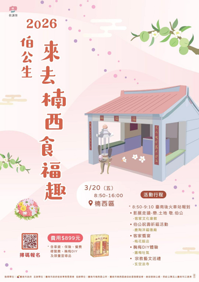 【記者潘志航/台南報導】農曆二月初二(國曆3月20日)是土地公誕辰,在客家文化中,土地公被稱為「伯公」不僅是保護地方的神明,更如同守護家園的長輩。 臺南市政府客家事務委員會今年特別規劃「伯公生」小旅行,邀請民眾走進楠西,一同為這位「最接地氣」的守護神慶生、食福分福氣。 活動將於2月26日上午9時開放報名,限額80名,額滿為止。
