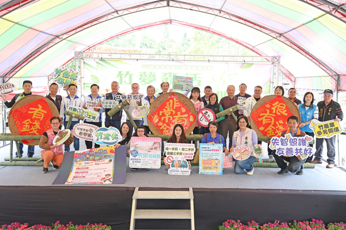 圖:南投縣政府115年度竹產業推廣活動-竹夢森活・與竹共鳴」在鹿谷鄉小半天石馬公園盛大開幕合影。 (記者李光曜/攝)