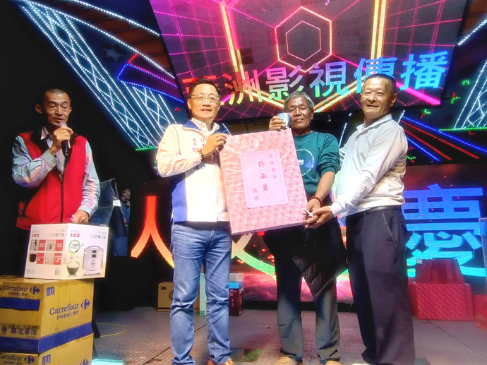 圖:南投縣政府計劃處長邱紹偉蒞臨指導摸彩合影。 (記者李光曜/攝)