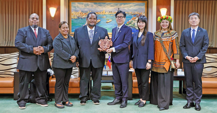 【記者孫千瓴/高雄報導】高雄市與帛琉科羅州(KororState)於2021年9月締結姊妹市,科羅州州長艾約斯・魯迪姆奇(EyosRudimch)上任後率團拜會高雄市長陳其邁,雙方就觀光交流、海洋永續、氣候變遷及城市建設等議題深入交換意見。 此次訪團成員共3人,包含科羅州第13屆州議會議長瑪麗・安德森-納貝亞馬(MarieAnderson-Nabeyama)及州議員洛丹・T・馬里爾(LordanT.Mariur)展現科羅州對雙城夥伴關係的高度重視。 高雄市長陳其邁熱烈歡迎訪團到來,特別感謝帛琉總統惠恕仁在國際場合為台灣發聲,支持台灣參與國際社會,以及對台灣遠洋船隻的協助支持,並指出高雄作為台灣最大港灣城市,長期以來重視與太平洋友邦的連結,尤其帛琉在海洋保育與觀光發展上具備國際能見度,與高雄在港灣治理、海洋永續及觀光行銷等面向具有高度合作可能性。