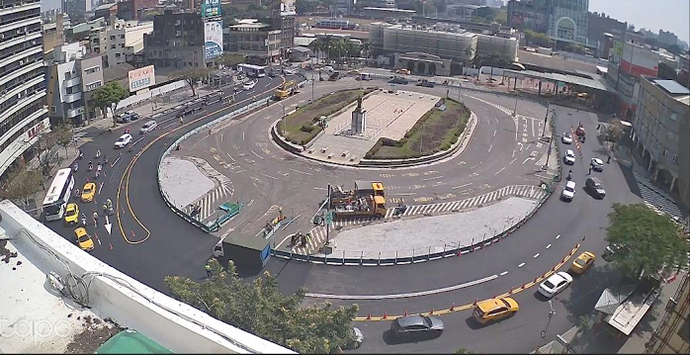 (圖說):臺南火車站前廣場改造第二階段交維調整行車動線,U型雙向通行上班首日運作順暢.(記者張志暐/翻攝)