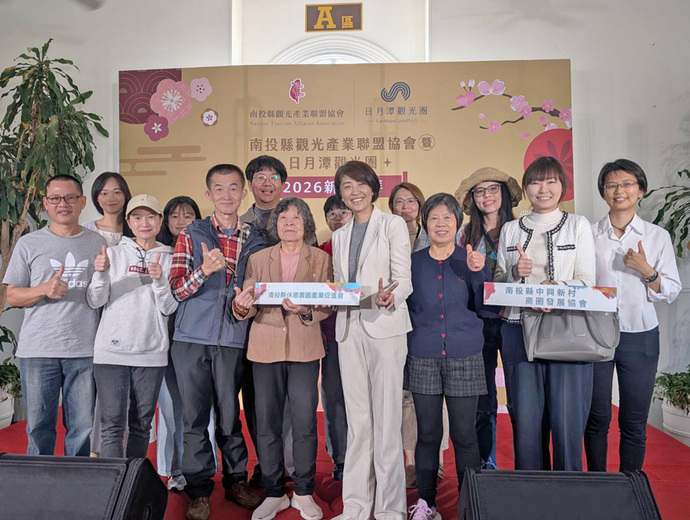 【記者朱怡甄、李光曜/報導】南投縣觀光產業聯盟協會與日月潭觀光圈聯盟共同主辦的「2026新春團拜活動」,在九族文化村盛大舉行,兩聯盟號召56個縣內觀光公、協會代表、觀光業者及全國或鄰近區域觀光重要夥伴共襄盛舉,充分展現南投縣觀光產業整體向心力與合作共榮的決心,南投縣長許淑華專程與會,特別感謝民間團體作為政府與產業間的橋樑,並強調南投縣政府將持續推動智慧觀光與景點升級,與業者攜手打造南投成為國際觀光首選。