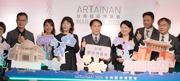 【記者黃燕/台南報導】「ARTTAINAN2026台南藝術博覽會」於3月13日至3月15日在台南晶英酒店6至7樓展出,於晶英酒店盛大舉行開幕記者會,由台南市長黃偉哲與各界貴賓共同揭開展會序幕。