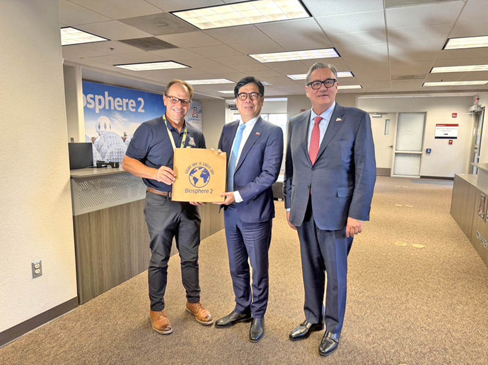 【記者郭于榛/高雄報導】高雄市長陳其邁近日率團訪問美國,除進行一系列半導體與經貿交流行程外,並前往位於亞利桑那州的全球知名封閉式生態系統研究設施「Biosphere2(生物圈2號)」參訪,在亞利桑那大學副校長TomásDíazdelaRubia、設施主要負責人JohnAdams的介紹下,訪團不只借鏡其在生態研究與環境教育經驗,作為高雄推動城市生物多樣性、生態教育與觀光的重要參考,更充分了解到氣候變遷的情境下,二氧化碳濃度、氣溫等對於生態系統的重大影響。