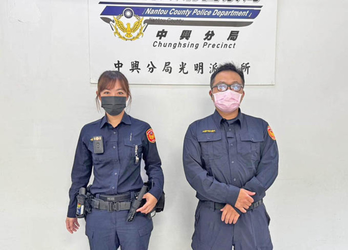 圖:南投縣警察局中興分局光明派出所員警賴建友及莊雅萍。 (記者李光曜/攝)