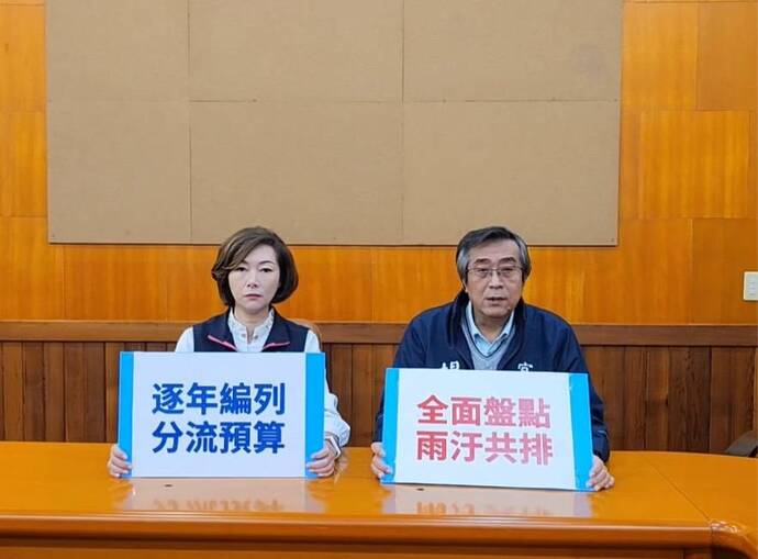 圖說:楊弘旻、黃琤婷要求政府負責分流逐年編列預算降低淹水風險。