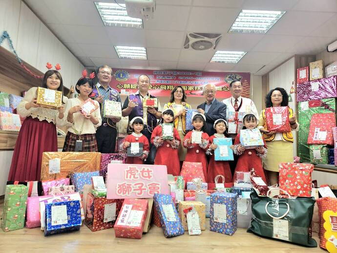 虎女獅子會楊明婉會長歡喜稱呼自己都成了聖誕奶奶,與獅姊們大家努力採買與花巧思包裝,希望家扶兒童歡欣獲得禮物與祝福,讓聖誕鈴聲歡樂圍繞迎接新的一年。