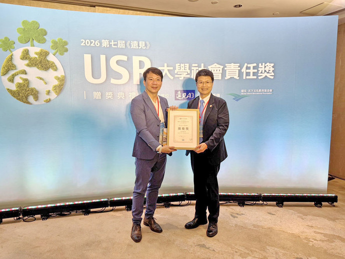 【記者廖淳曼/嘉義報導】2026年第七屆《遠見》USR大學社會責任獎於4月9日舉行頒獎典禮,本屆賽事競爭激烈,共吸引全臺57所大專校院、222件方案參與角逐。 嘉義大學今年首度參賽,即憑藉深厚的在地實踐基礎與跨域整合能量,自眾多優秀團隊中脫穎而出,榮獲「生態共好組」績優獎,展現嘉大推動大學社會責任的卓越成果。