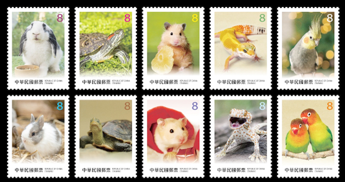 郵票圖案以廣受民眾喜愛的小型寵物為主角,包含溫馴可人的兔子、吉祥長壽的烏龜、靈巧逗趣的倉鼠、獨具魅力的守宮及羽色華麗的鸚鵡。 千姿百態的萌寵不僅給予家人溫馨的陪伴,更帶來歡笑與感動。