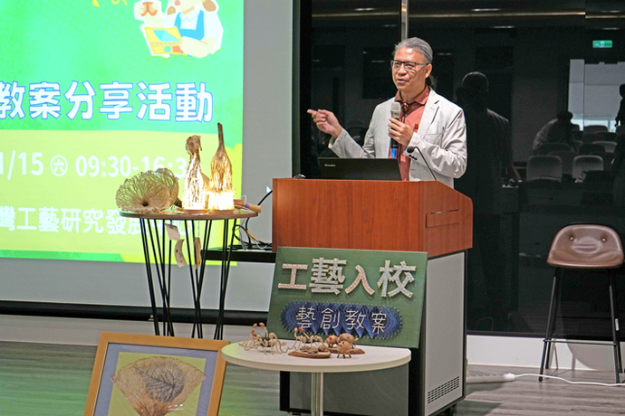 工藝中心日前舉辦《工藝入校。 藝創教案》教案分享活動,邀請臺中市霧峰區五福國小賴如足校長、臺中市大肚區永順國小張鈞凱主任、臺中市私立惠明盲校揭金鳳老師、高雄市林園區林園國小羅予妍老師及國立新竹科學園區實中國小部陳巧璇老師分享教案成果與研發歷程。 活動吸引來自全國教師、工藝師與教育推動者齊聚一堂,共同見證工藝教育在校園扎根、萌芽與拓展的成果。