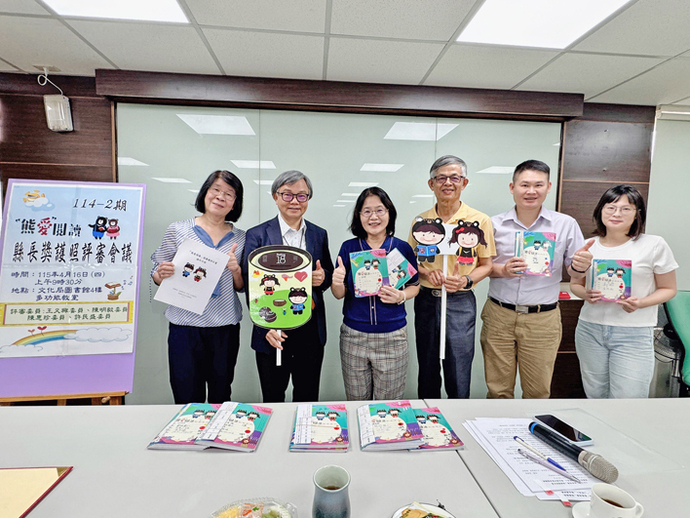 圖:南投縣政府文化局邀請兒童閱讀、兒童文學、美術專家組成評審團完成「熊愛閱讀」第13期的護照認證了合影。
