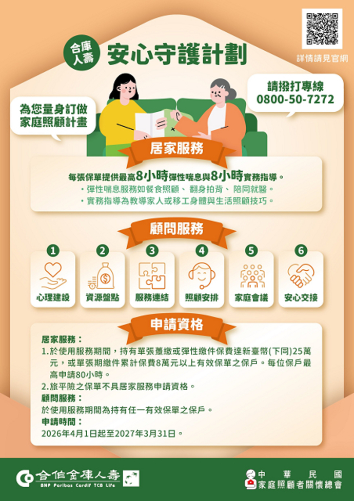 公司不僅在保險商品上提供穩健選擇,更透過免費居家照顧服務、顧問服務及喘息支持,協助保戶在面臨家庭照顧壓力時獲得全方位支援。