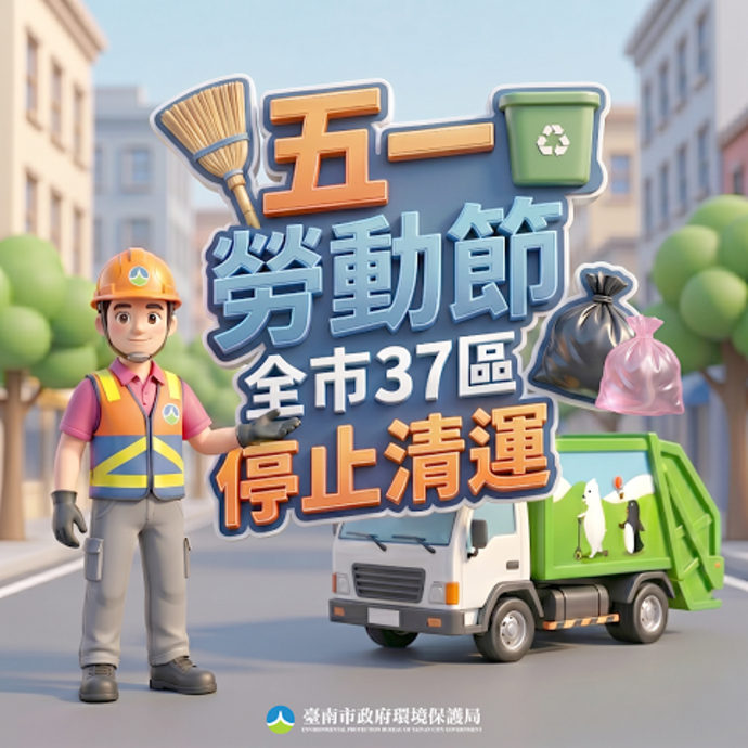 【記者潘智航/台南報導】連假將至,環保局為保障各區清潔隊員勞動權益,5月1日勞動節當天全市垃圾停止清運(含日間輔助點停收)為維持市容整潔,5月2日(六)全市各區正常清運,請市民朋友留意收運時間與地點,提前做好垃圾分類及整理。
