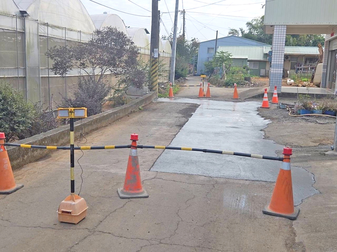 經過專業評估與緊急發包,修復工程已於今日正式展開並順利完工。 施工團隊針對路面坑洞進行了紮實的地基回填與水泥鋪設,確保路面平整與載重能力。