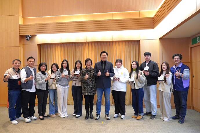 每半年,新北市府辦理一次表揚,今年別具意義,特別將傳統獎狀改為「母雞造型」獎座,以母雞守護小雞的意象,象徵安全網夥伴如同溫暖後盾,陪伴脆弱家庭度過難關、重新站穩腳步,也傳達「用愛孕育希望、用心守護家庭」的服務精神,強化跨單位合作的榮譽感與使命感。