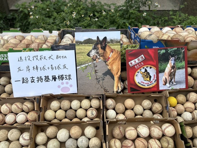 自退休後,Beta與家人定居新竹,常在左岸棒壘球場附近散步。 憑藉靈敏的嗅覺與專業訓練,Beta竟在日常散步中陸續從草叢、林間與泥土中挖出超過千顆棒壘球,令人驚嘆不已!認養家庭王小姐說:「原本會把挖到的球直接放置於球場旁的垃圾桶裡,後來實在是太會找球了,於是想先收集起來看看是否會是個驚人的紀錄。 」。 隨著數量不斷累積,家人們決定轉化這份驚喜為善意行動:不僅清理了環境中的球類廢棄物,也希望讓這些被遺忘的球獲得新生,發揮更大的價值。 今年11月中,Beta圓滿走完她精彩的一生。 為了延續她對人類社會的貢獻,家人特地整理並分類她所尋獲的棒壘球,最終在新竹市水源里曾翰揚里長的協助下,將其中約700顆狀態良好的球捐贈給長期投入基層棒球教育的教練,作為球隊日常訓練之用。