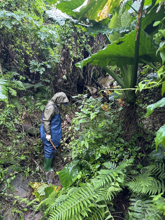 稽查人員於12月24日接獲民眾檢舉後即刻出擊,發現公司田溪有油污情形,立即於下游妥適處設置白色吸油棉索,另水利局亦於25日在下游增設橘色攔油索進行雙層防護。 即使連日降雨,稽查人員仍不畏艱辛連續數日溯溪追蹤,身著青蛙裝深入溪床溯源,同步擴大範圍巡查周遭可疑污染源,由於該地勢高聳且草木叢生,且溪底土質鬆軟,導致稽查人員一度陷入泥沼無法前進,但為找出破壞環境元兇,稽查人員排除萬難,努力不懈,終於在12月30日發現一處在流速緩慢的河道,水面浮有明顯油污且散發濃厚油氣味,與24日發生之水污案特徵高度吻合。