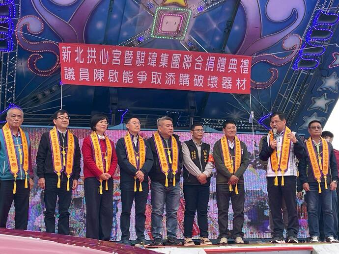 新北市民政局長林耀長表示,新北拱心宮長年秉持媽祖慈悲濟世精神,積極投入公益慈善與社會關懷,成果斐然。 去(114)年「丹娜絲颱風」與三重地區11間宮廟聯合共同捐款新臺幣111萬元至衛服部賑災基金會捐款專戶,並於每年媽祖聖誕結合在地企業、社團及善心人士捐贈的資源,長期捐助「獎助學金」獎勵三重在地成績優秀的學童,長期投入社會公益,深獲地方肯定與讚揚。