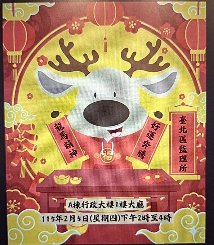 臺北區監理所誠摯邀請您共同參與本活動,期許所有民眾在該所感受新年氣氛歡喜迎春同時,也能將實用的交通安全知識與精美藝術春聯一同帶回,闔家平安又順心。