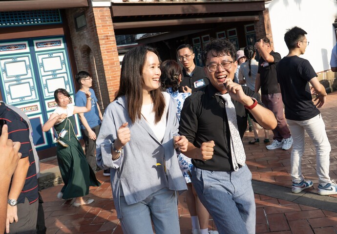 而隨後登場的「浪漫賽道」,則由參加者自由組隊玩兩人三腳,並時限內跨越關卡,考驗彼此的默契與合作感;最後,「陌生餐桌」體驗,則搭配提問卡進行限時對話,並透過多輪換桌,讓青年快速拓展交友圈,並留下最有趣的相遇回憶。