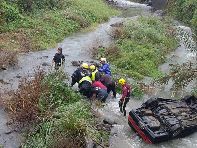 小客車墜落溪床 瑞芳警協助消防單位救援