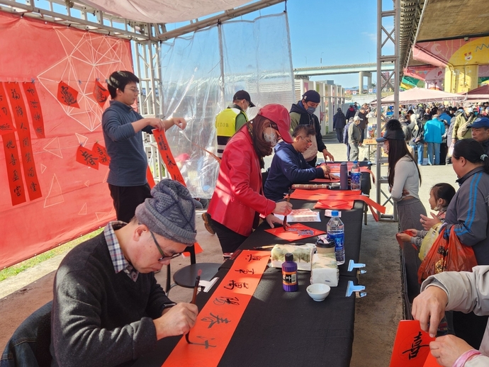 感受濃厚年節氣氛 新北河濱重新觀光市集馬躍迎春活動贈送春聯又拿發財金