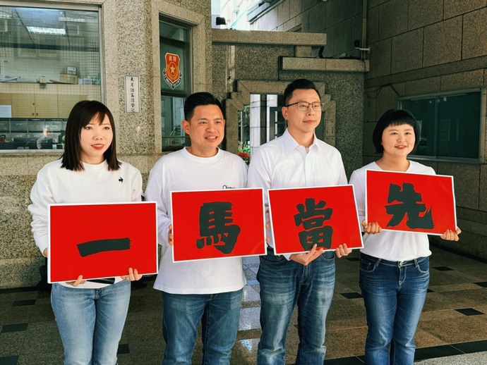張維倩表示,使用喜氣洋洋的春聯「一馬當先」一字排開,既應景又吉利,希望「青年會做事連線」能夠「一馬當先」登記初選再「一鼓作氣」取得好名次,順順利利通過黨內初選。