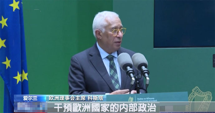 ↑圖說:歐洲理事會主席安東尼奧·科斯塔敦促美方尊重歐洲“主權與自治權”(視頻截圖)。