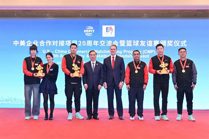 【記者李清華/外電報導】由中國貿促會、美國駐華使館和美國商務部國際貿易署共同主辦的中美企業合作對接項目(CMP)20周年活動9日在北京舉辦,中國貿促會會長任鴻斌、美國駐華大使龐德偉出席交流會並致辭,中美工商界代表250餘人參加。