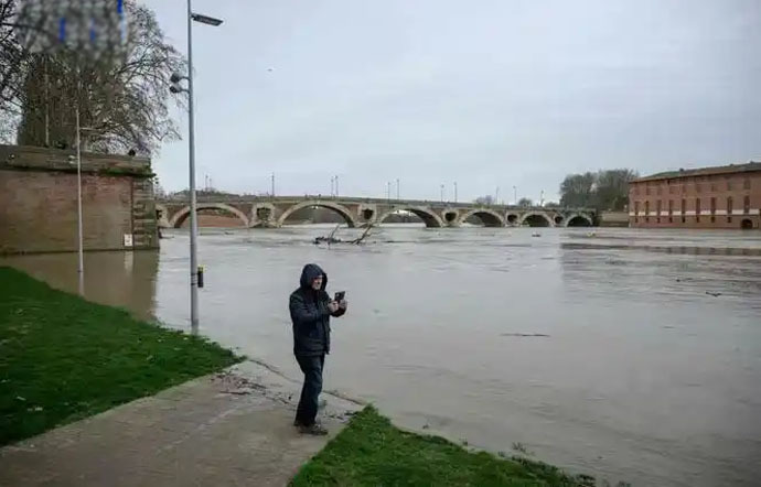 ↑圖說:2月11日,法國圖盧茲市,加龍河因強降雨水位上漲(供圖)。