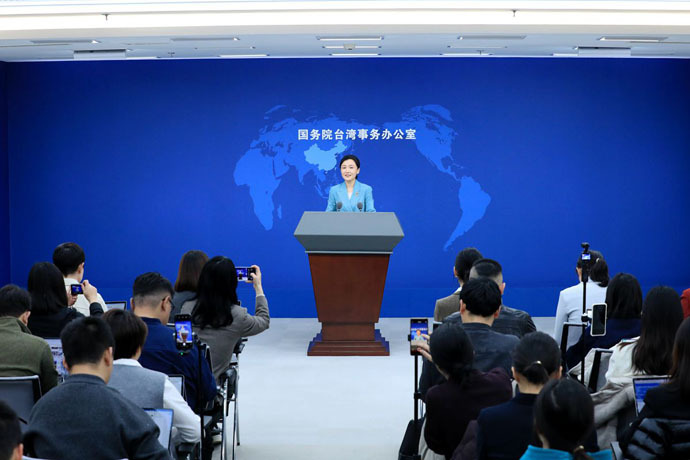 ↑圖說:3月4日,國務院台灣事務辦公室在北京舉行例行新聞發布會,發言人張晗就近期兩岸熱點問題回答記者提問(供圖)。