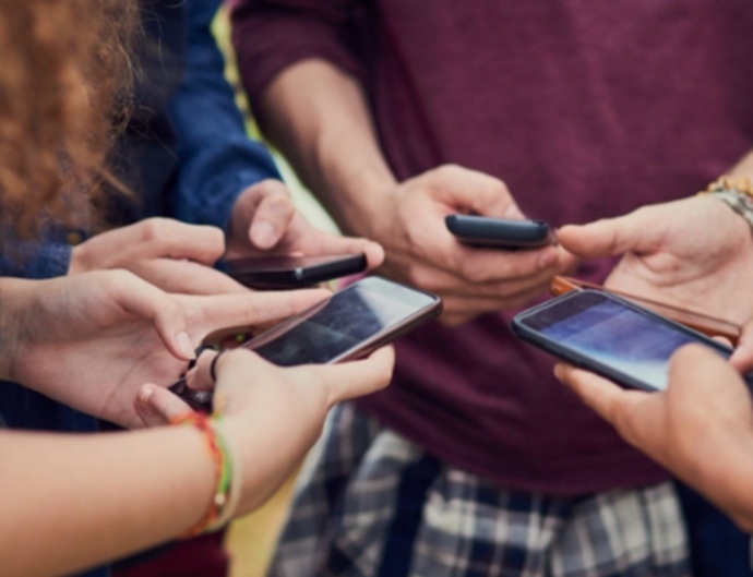 ↑圖說:外國未成年人手機社交示意圖(資料圖)